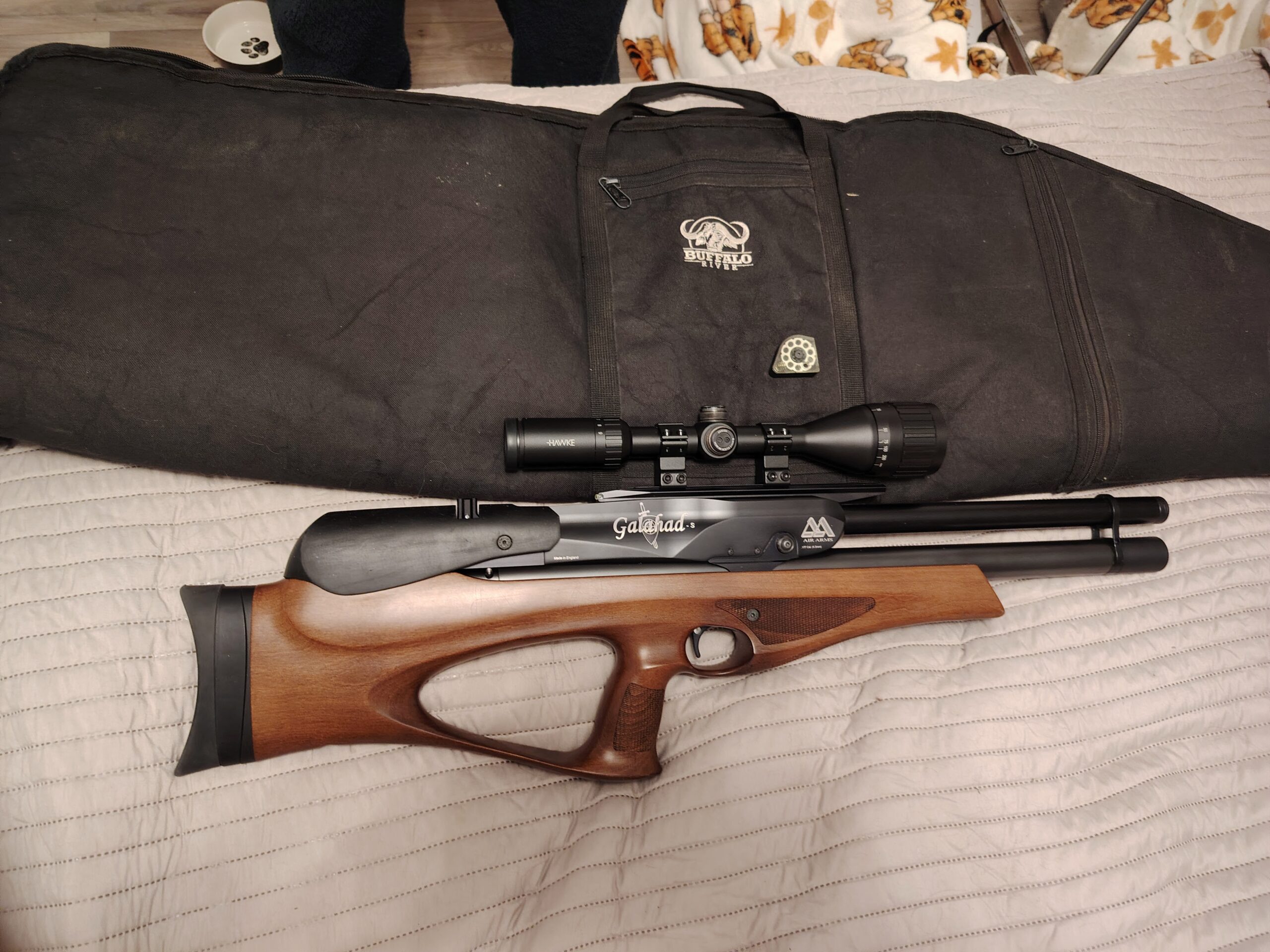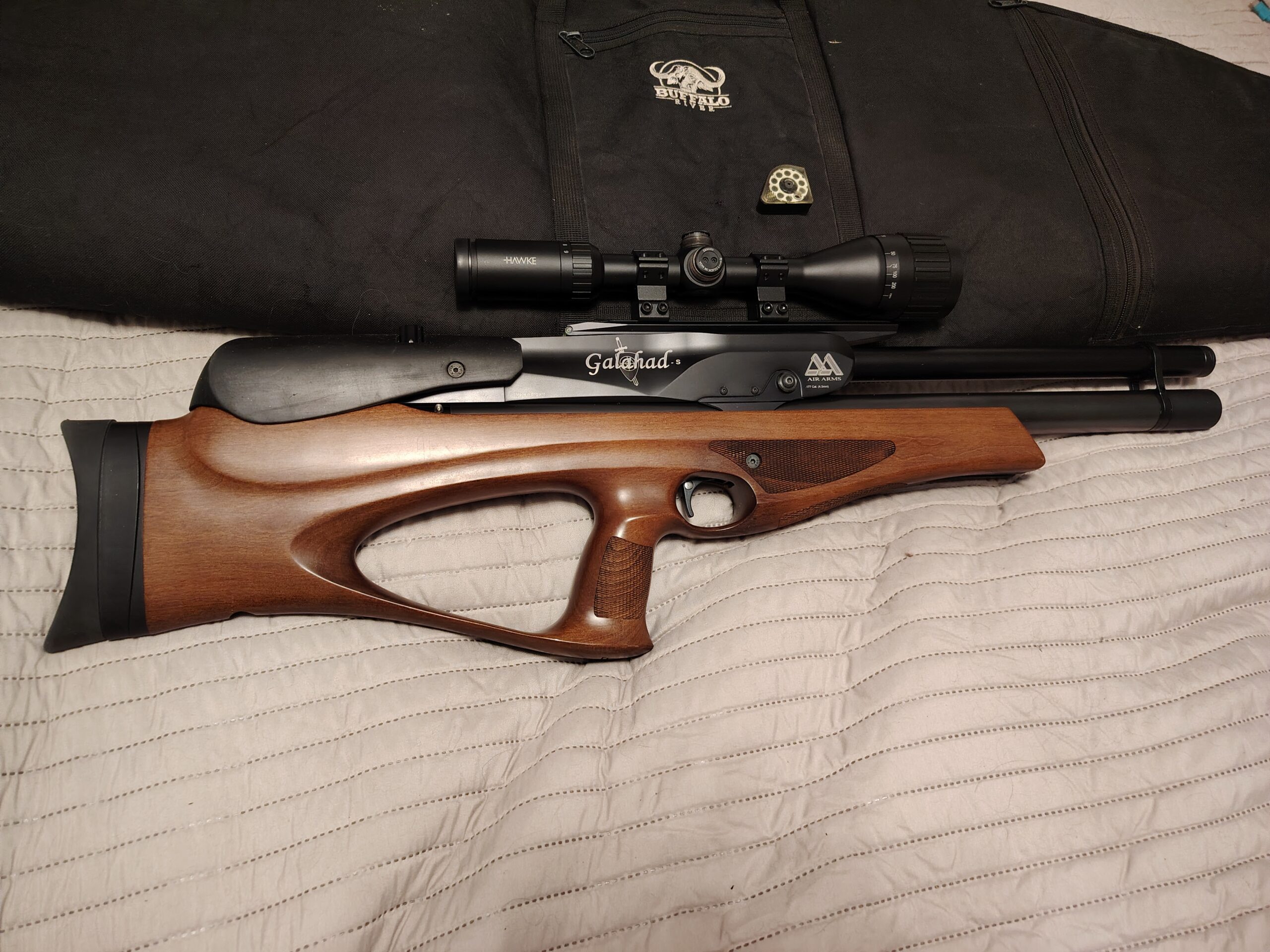 Selling my Air Arms Galahad-S with a hawke scope, 1 magazine and a buffalo canvas bag.