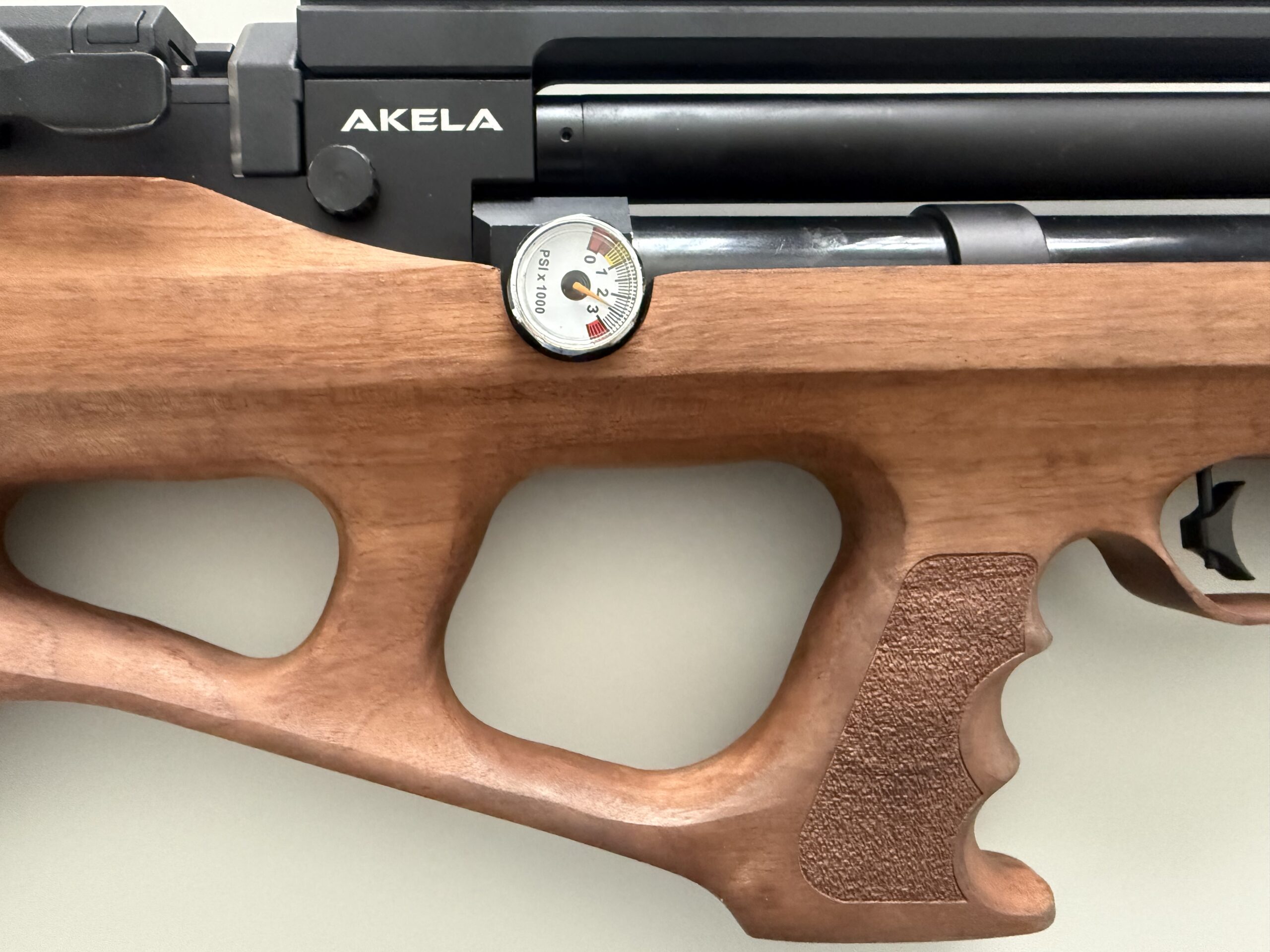 The Craftsman Collection, from the iconic Benjamin brand, presents the Akela Bullpup style PCP-powered air rifle. Featuring a Turkish walnut stock with an adjustable cheek piece, adjustable trigger shoe, 12-shot rotary magazine, rifled steel barrel with integrated silencer. The Akela comes with a side cocking lever, power adjuster knob, and Picatinny mounting rail for your accessories.