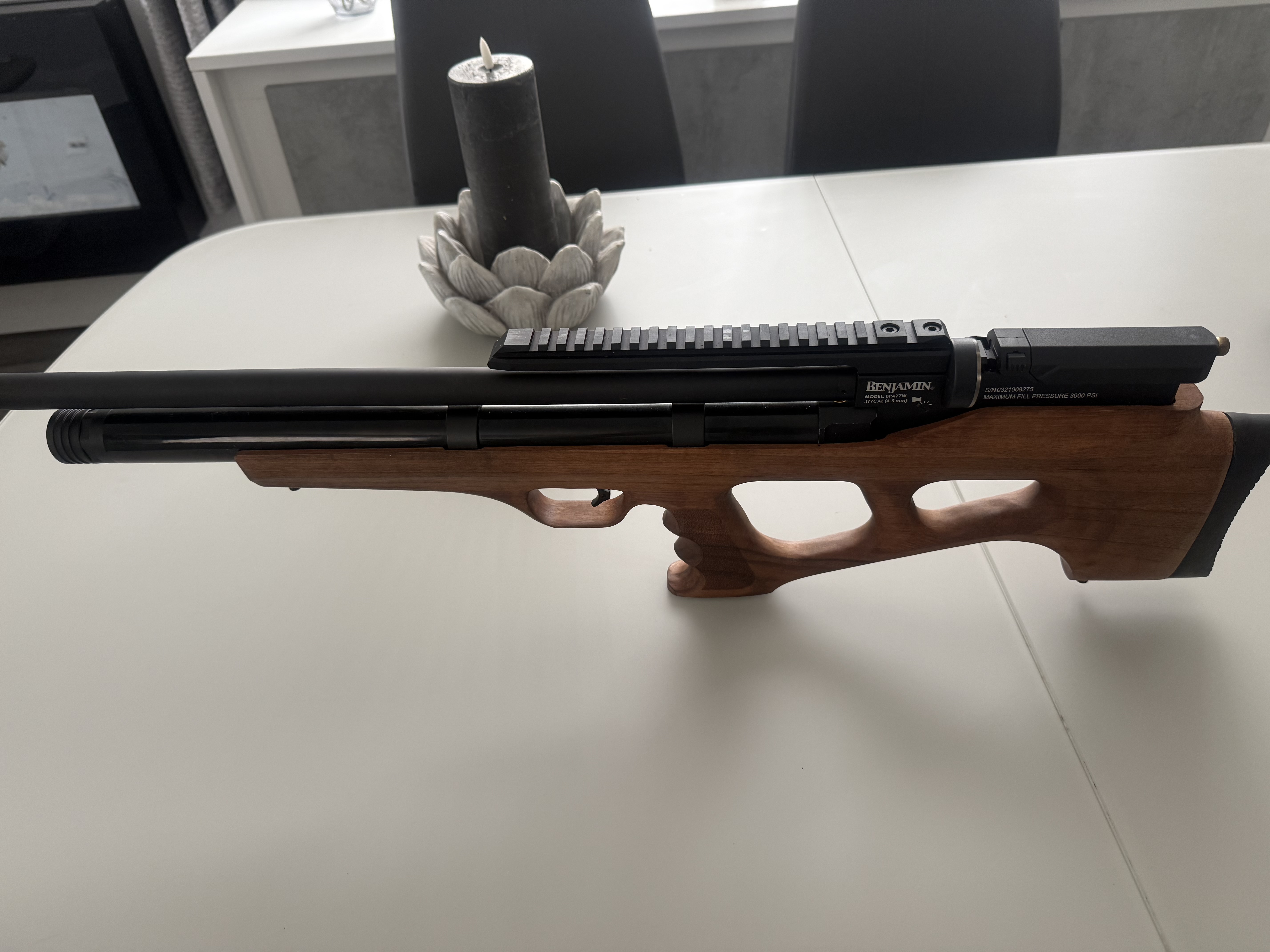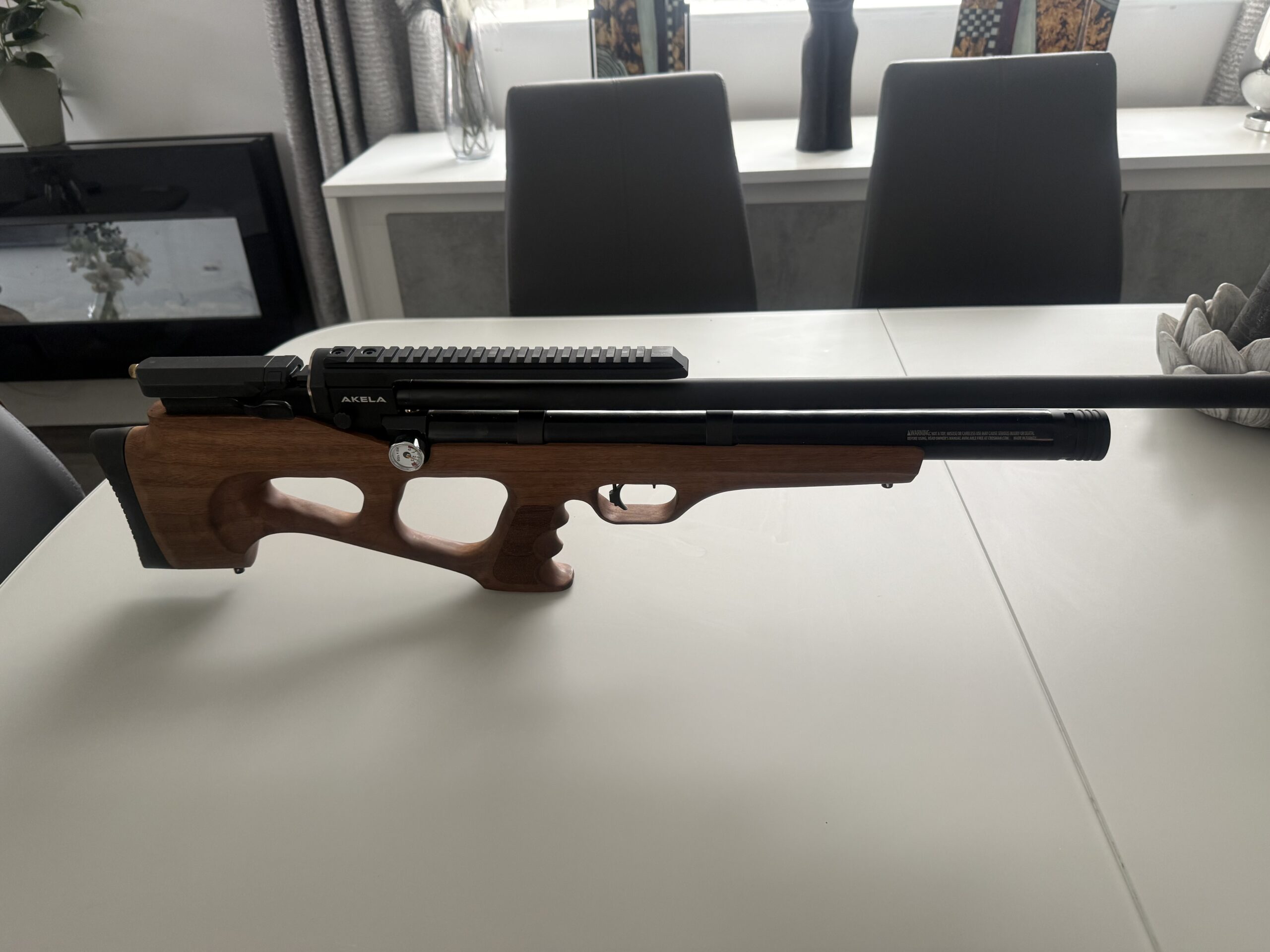 For sale the iconic American benjamin Akela .177 Bullpup rifle . Bought brand new 11 months ago for £575 , only selling it as I’ve only used it a couple of times so it needs to go . It’s a beautiful gun , very accurate, being only 11. Months old it is in excellent condition, selling at only £375 for a quick sale , do a real bargain .
