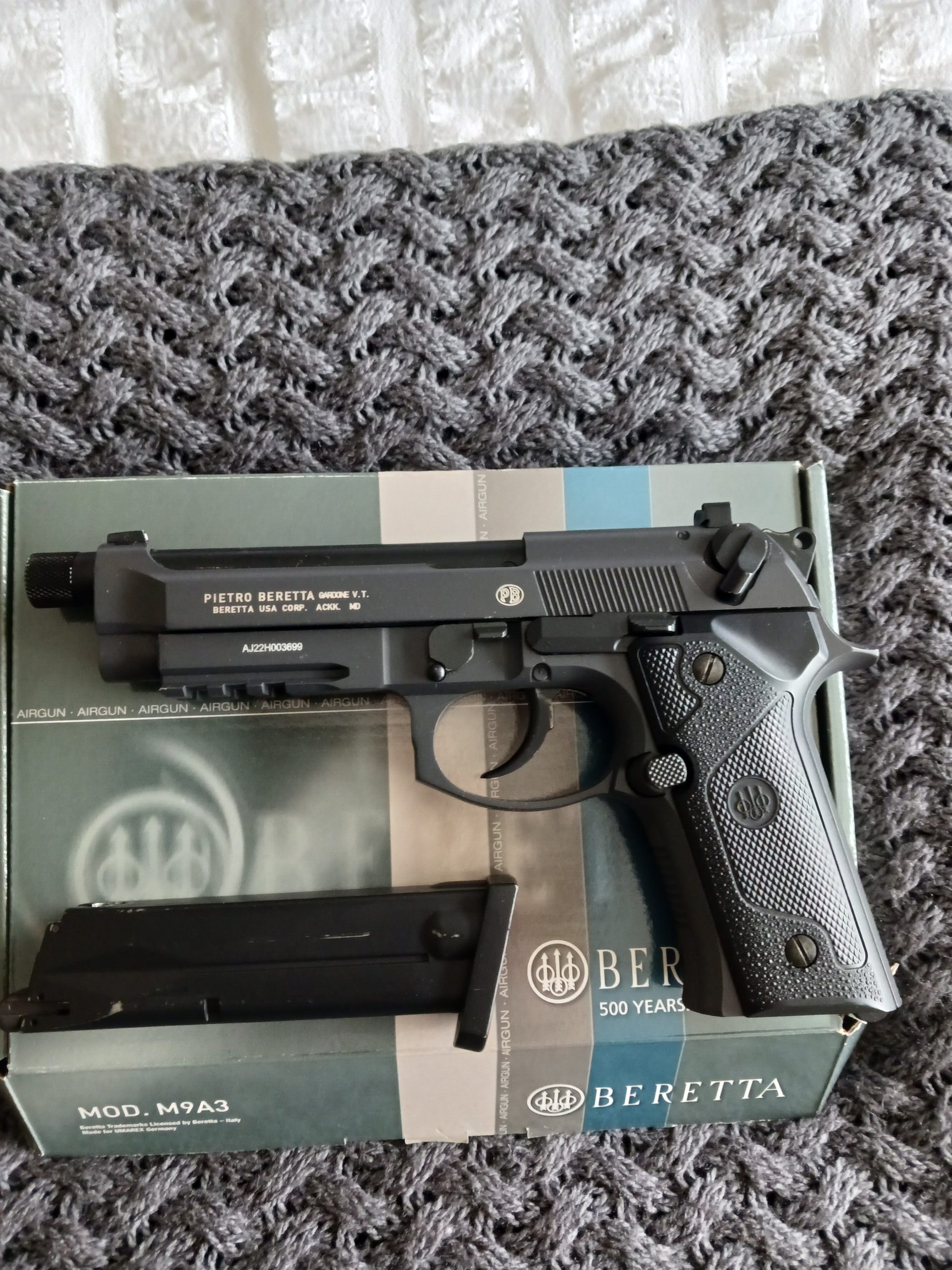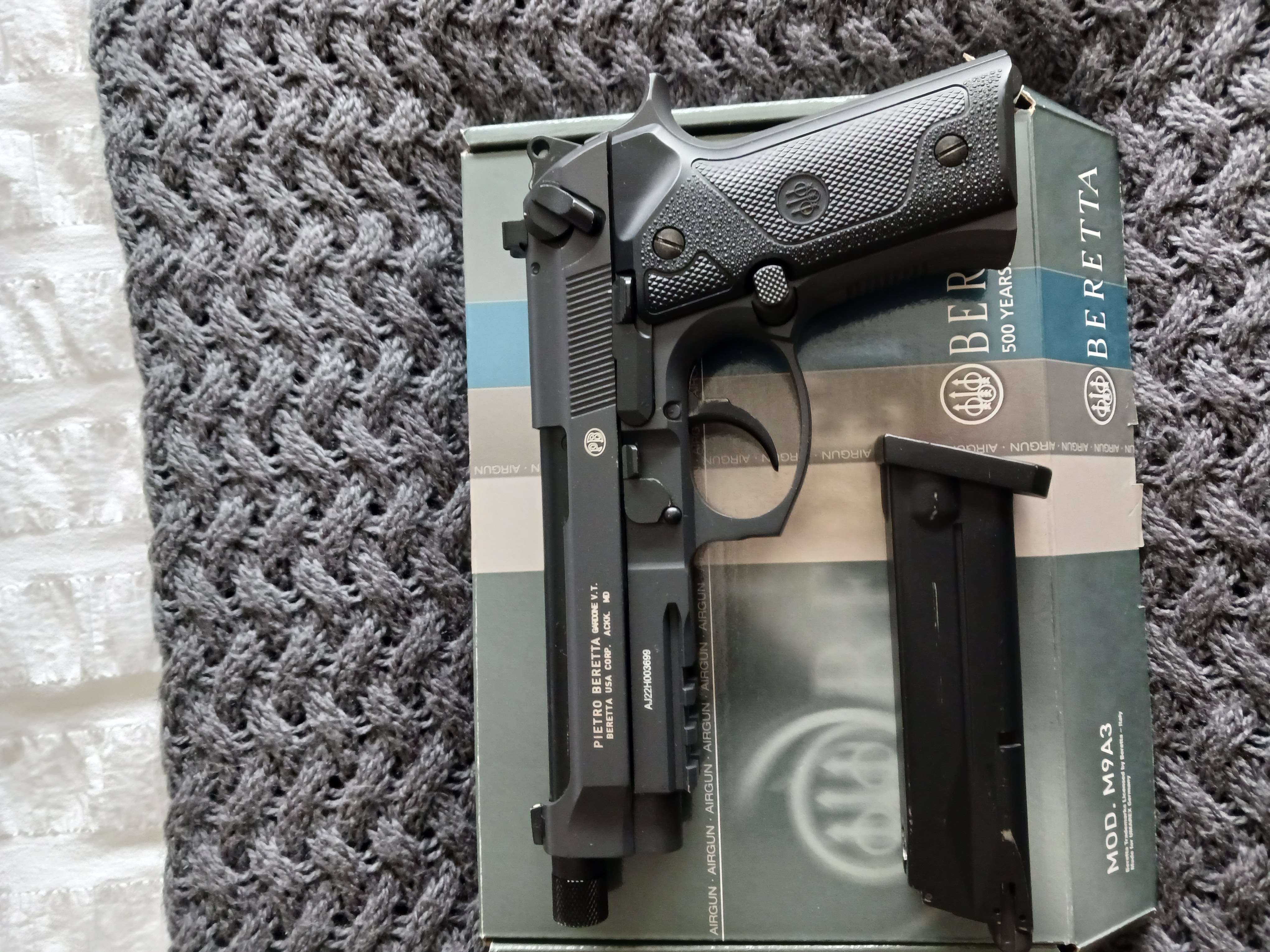Beretta M9A3, blowback, all metal , co2, 1.77 bb . Very realistic replica of the legendary pistol, 18 round magazine, semi auto, fantastic 2 stage trigger, and slide locks back after last shot. Accurate and same weight as the real firearm. As new condition in original box , approx £ 200 + brand new. Selling my pistol collection.