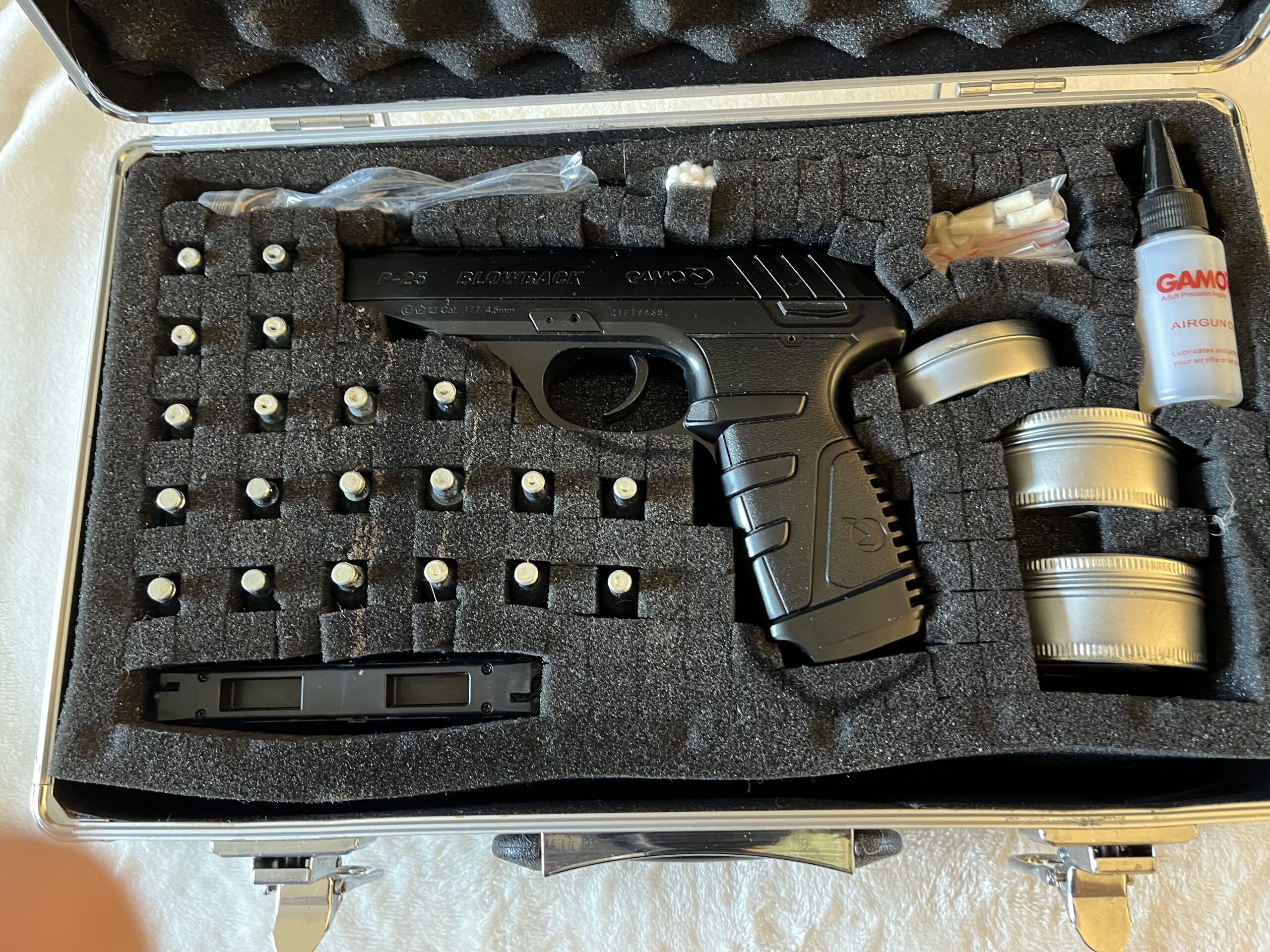 A very lightly used and in excellent condition a Gamo P-25 semi automatic CO2 .177 Air Pistol with Blowback action.