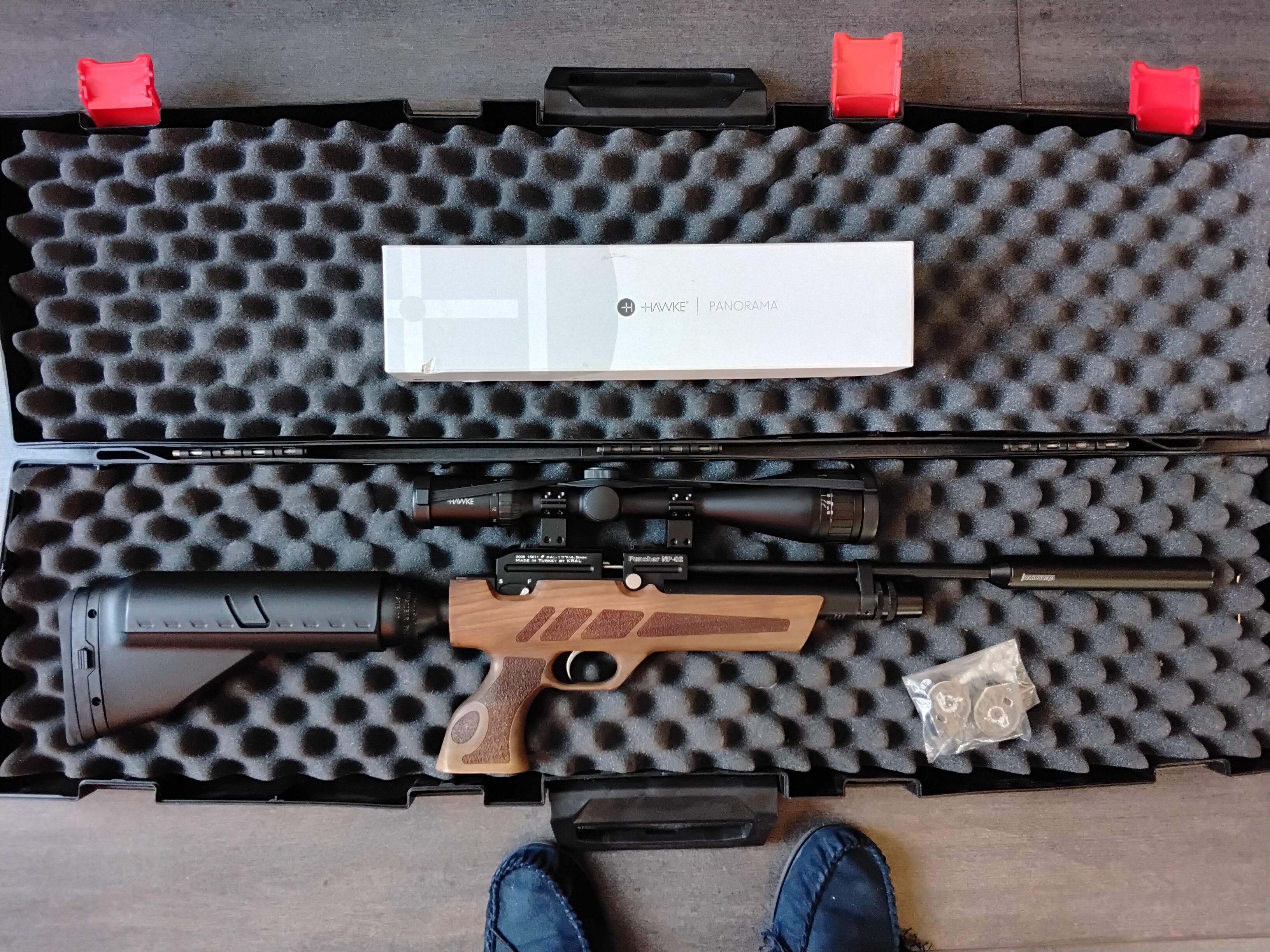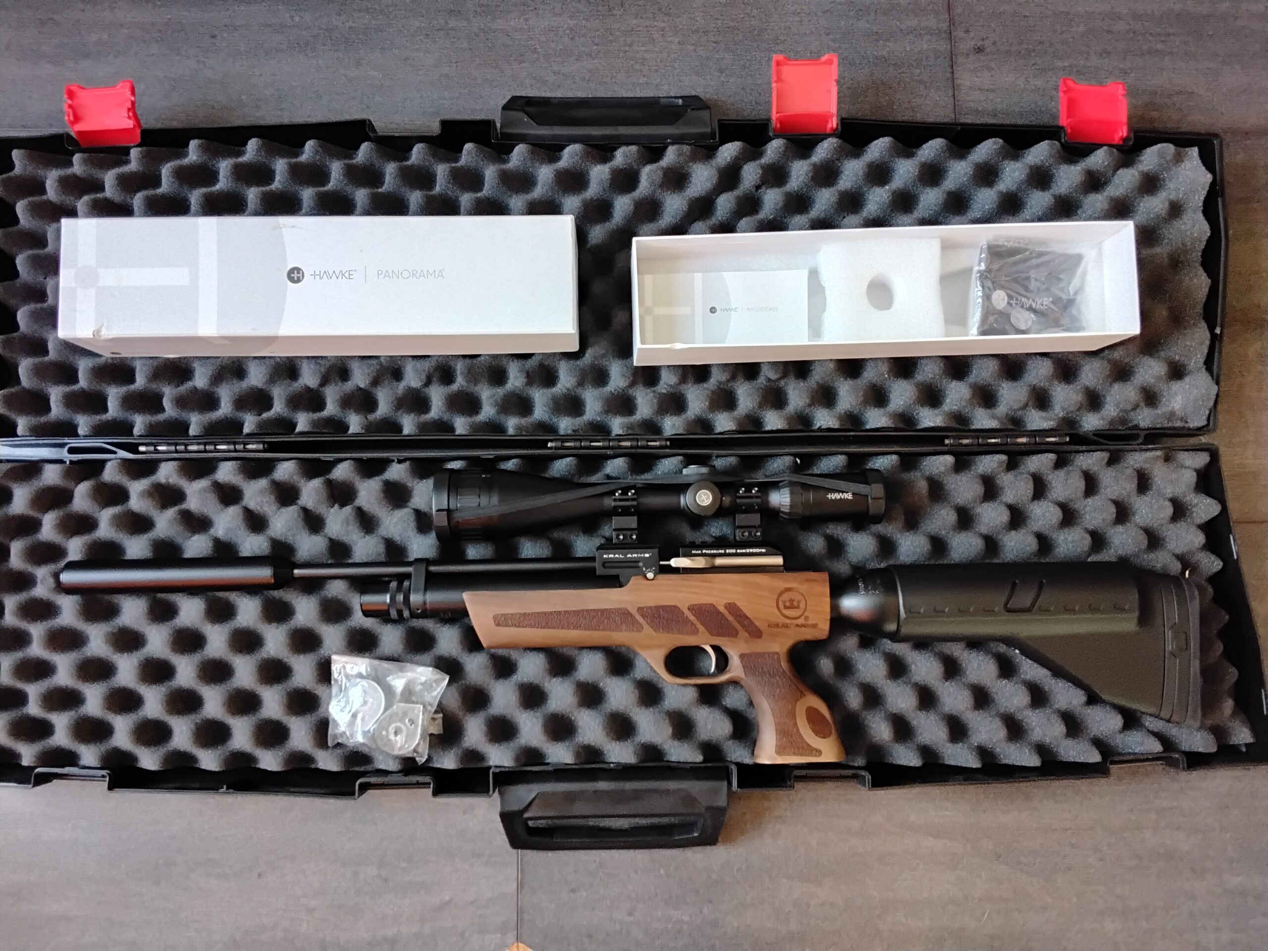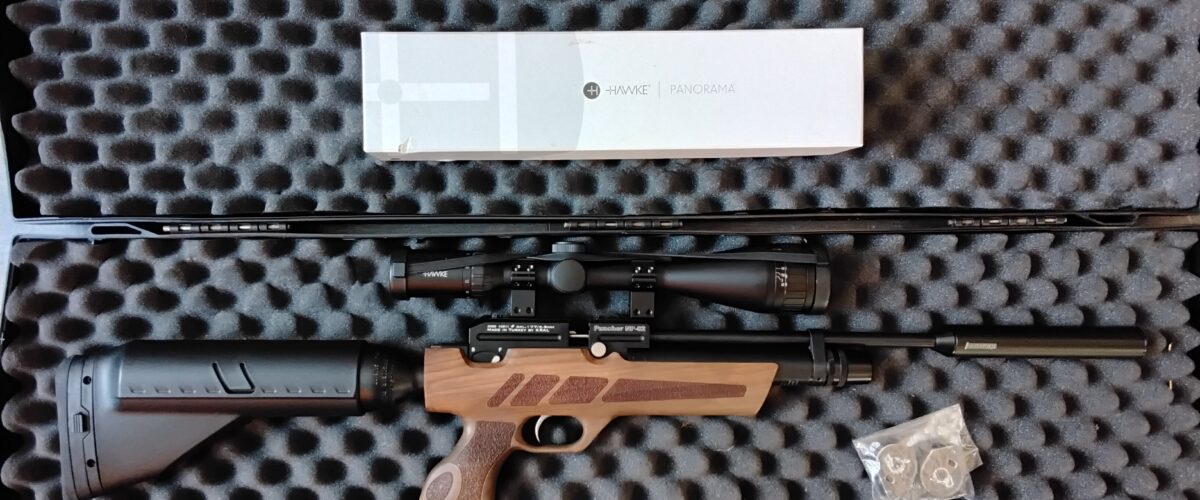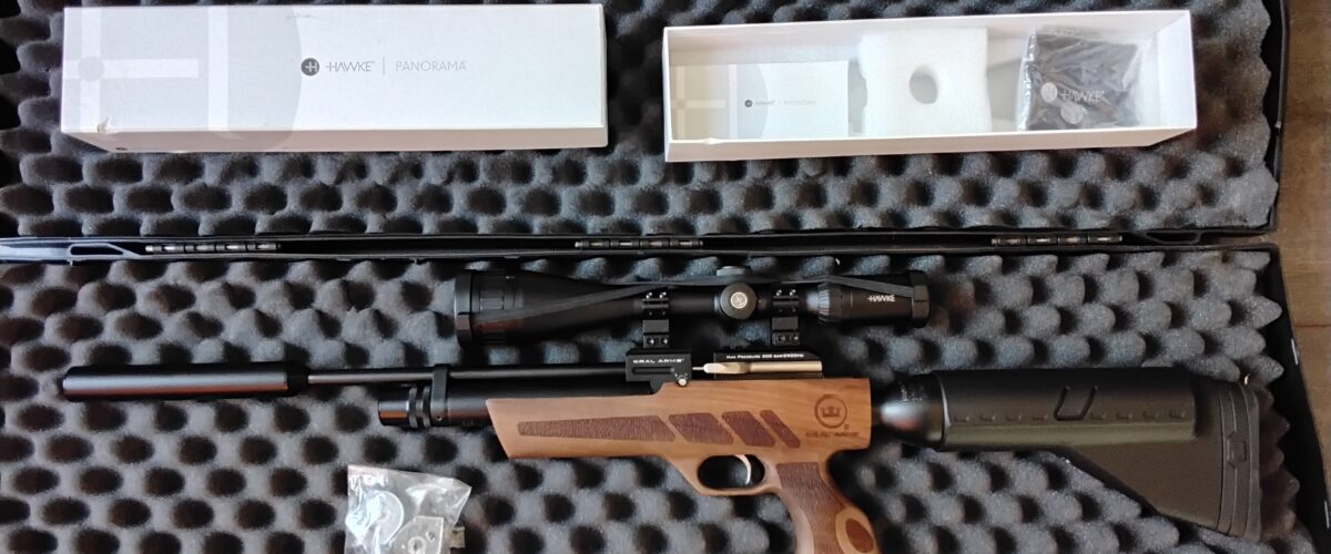 In as new condition, only used 2 times. Come complete with case, like new Hawke Scope, Walnut stock, pump, two magazines, fill probe, seals, huge shot count, Weihrauch moderator. May split up if just rifle wanted £295.