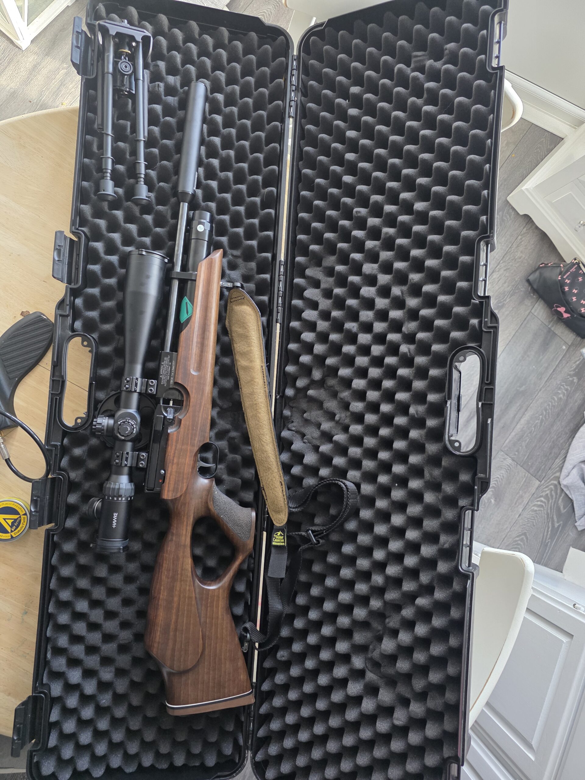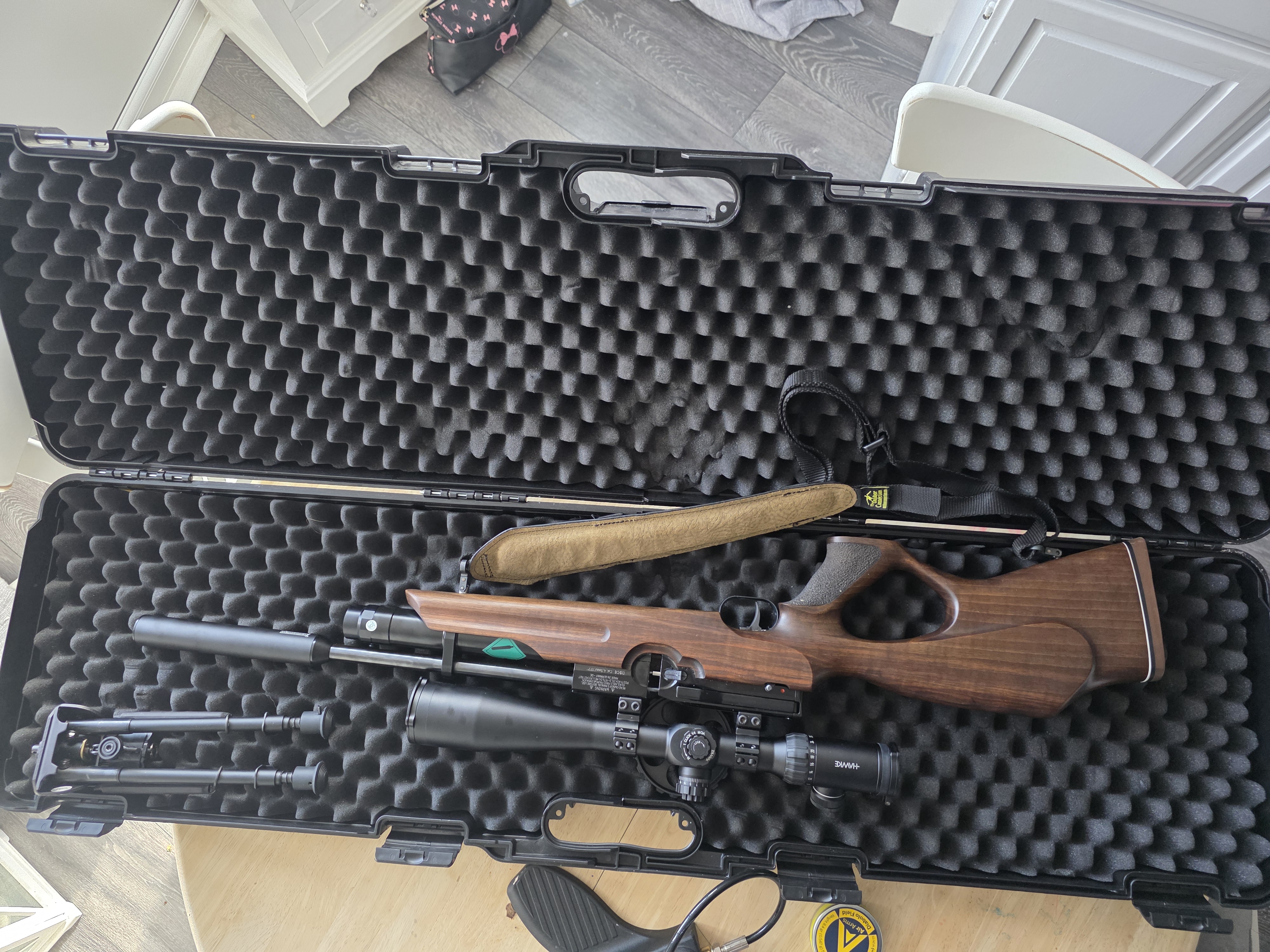 Come with case, hawke scope and wheel